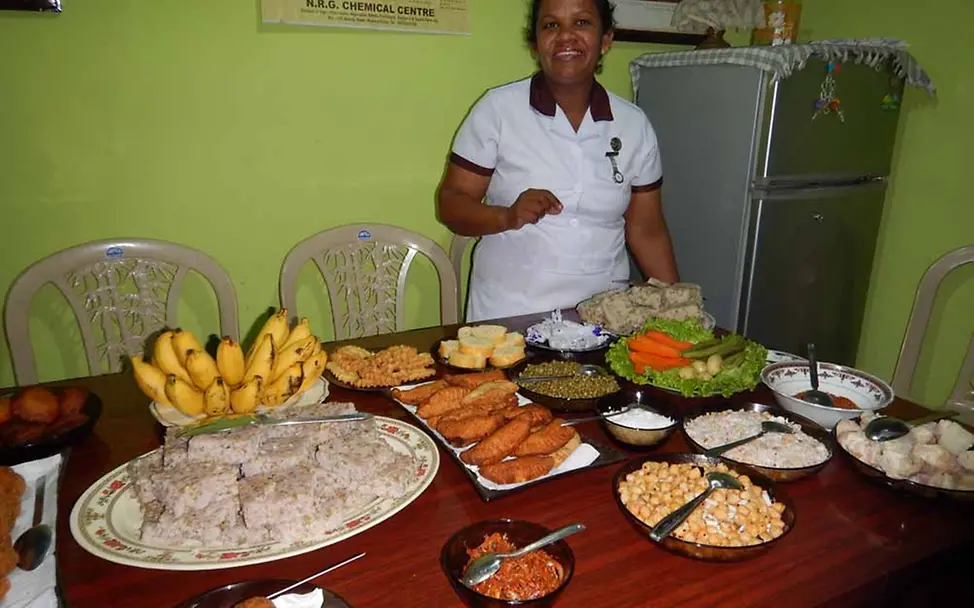 © UNICEF DT/2015Am Ende wollen mir die Frauen natürlich zeigen, was unter gesunder Ernährung zu verstehen ist. Sie haben ein üppiges Buffet zusammengetragen und wir werden mit lauter leckeren Sachen verköstigt. Es schmeckt fantastisch! Meine gesunde Ernährung ist an diesem Tage auf jeden Fall sicher gestellt. Die Fröhlichkeit, den Pragmatismus und die ansteckende Energie der Frauen von Kothmale nehme ich dankbar mit.