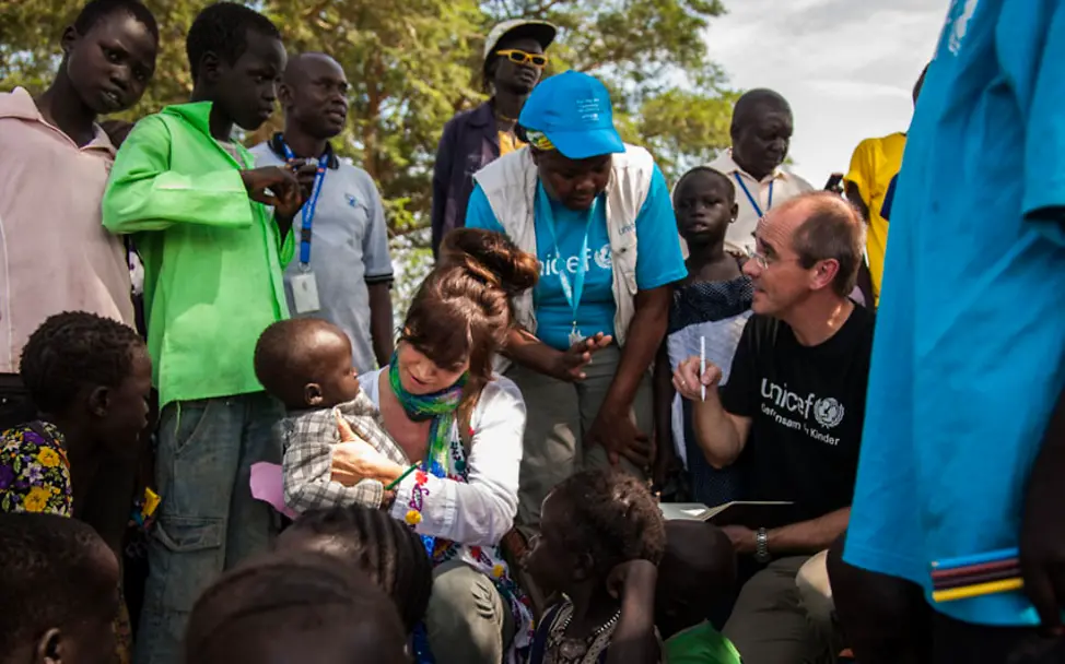 Ich bin mit der Vorstandsvorsitzenden der Stiftung United Internet for UNICEF, Tessa Page, in Juba und Bor, wo UNICEF Hilfe leistet, die Leben rettet. Die Stiftung unterstützt den Einsatz von UNICEF für die Kinder im Südsudan. Für die lebensgefährlich geschwächten Kinder kommt es weiter auf jede Spende an.
