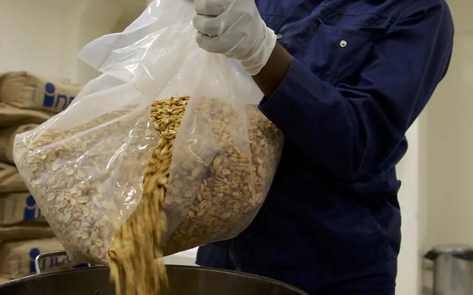 Die Mitarbeiter der Fabriken gehen bei der Produktion der Erdnusspaste sehr sorgfältig vor. Schutzkleidung etwa ist jederzeit Pflicht. Und bevor die Erdnusspaste ausgeliefert wird, durchläuft sie einen Qualitätscheck im fabrikeigenen Labor.