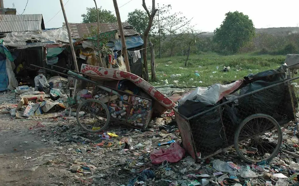 Abfallberge am Straßenrand des Armenviertels von Stunt Meanchey.